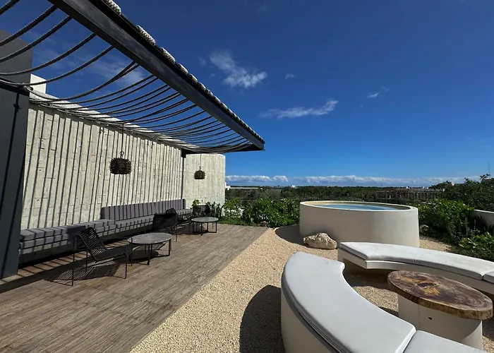 Das 1-Zimmer-Luxury Studio-Private Individual Pool-Iik C409 By Sandy Powerful Tulum liegt in der Nähe von verschiedenen Attraktionen der Stadt: Xibalba Dive Center befindet sich unter anderem weniger als 5 Minuten zu Fuß von hier entfernt. Das Apartment bietet eine Terrasse mit Blick auf die Stadt.